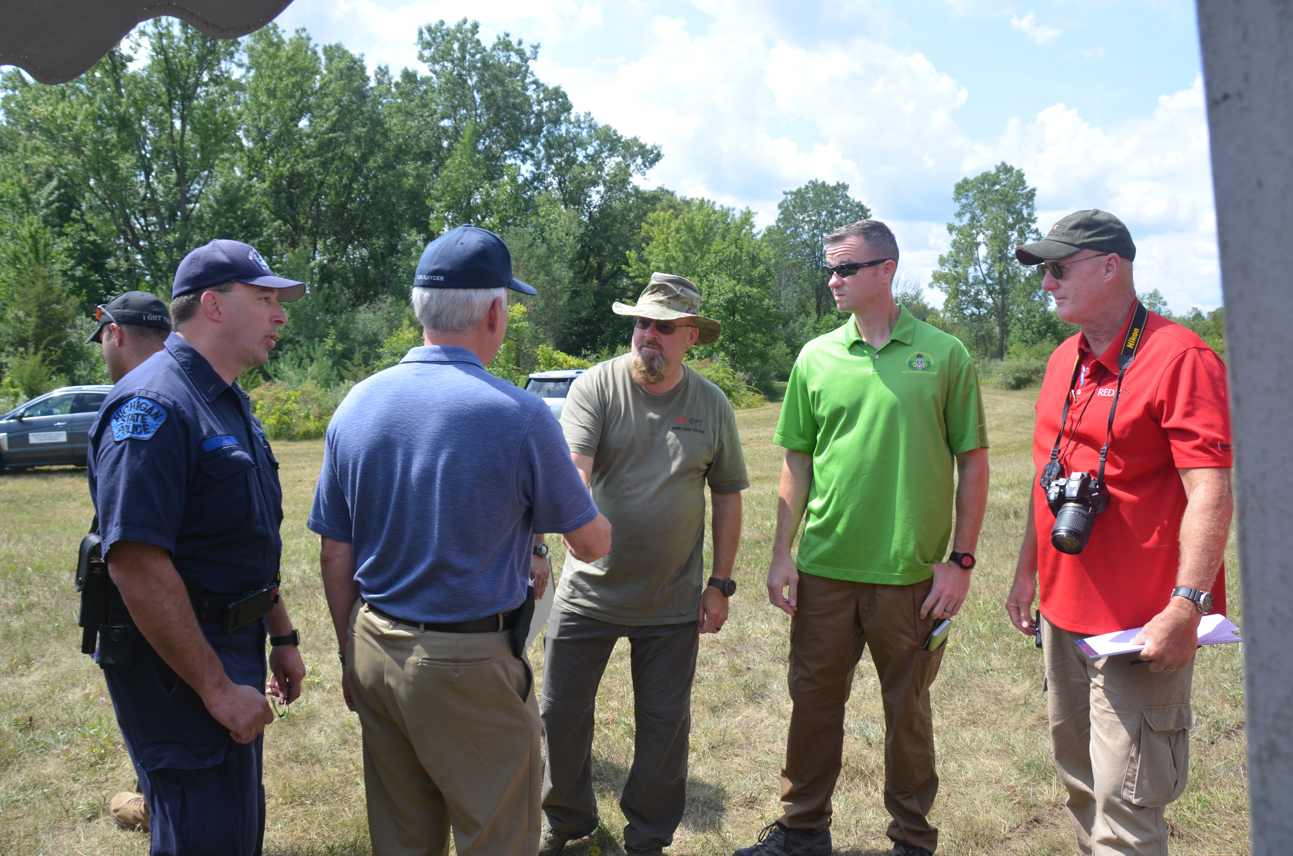 DAGER Technology helped to conduct the Bomb Squad Test Bed VBIED Response Experimentation Assessment August 14–18, 2017, in Milford, Michigan. The assessment sought to identify best practices, lessons learned, and technology development requirements by analyzing the response tactics and equipment choices of various bomb squads. Teams from the Michigan State Police, New Jersey State Police, Saint Paul Police, U.S. Air Force, and Canadian Air Force responded to six different scenarios designed to assess their capabilities, tools, and decision process. DHS S&T First Responders Group, REDOPS, FBI, Michigan State Police and DAGER Technology hosted Michigan Governor Rick Snyder during the assessment. Governor Snyder agreed that collaborating across federal, state, local, military, and international agencies is an ideal approach to improving IED response. The governor watched all the teams in action and even fired a “boot banger” disruption charge.